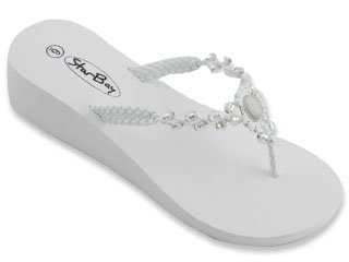 Womens Fashion Wedge Sandals Thongs Flip Flops W/Pearls (9, White 2315) Reviews